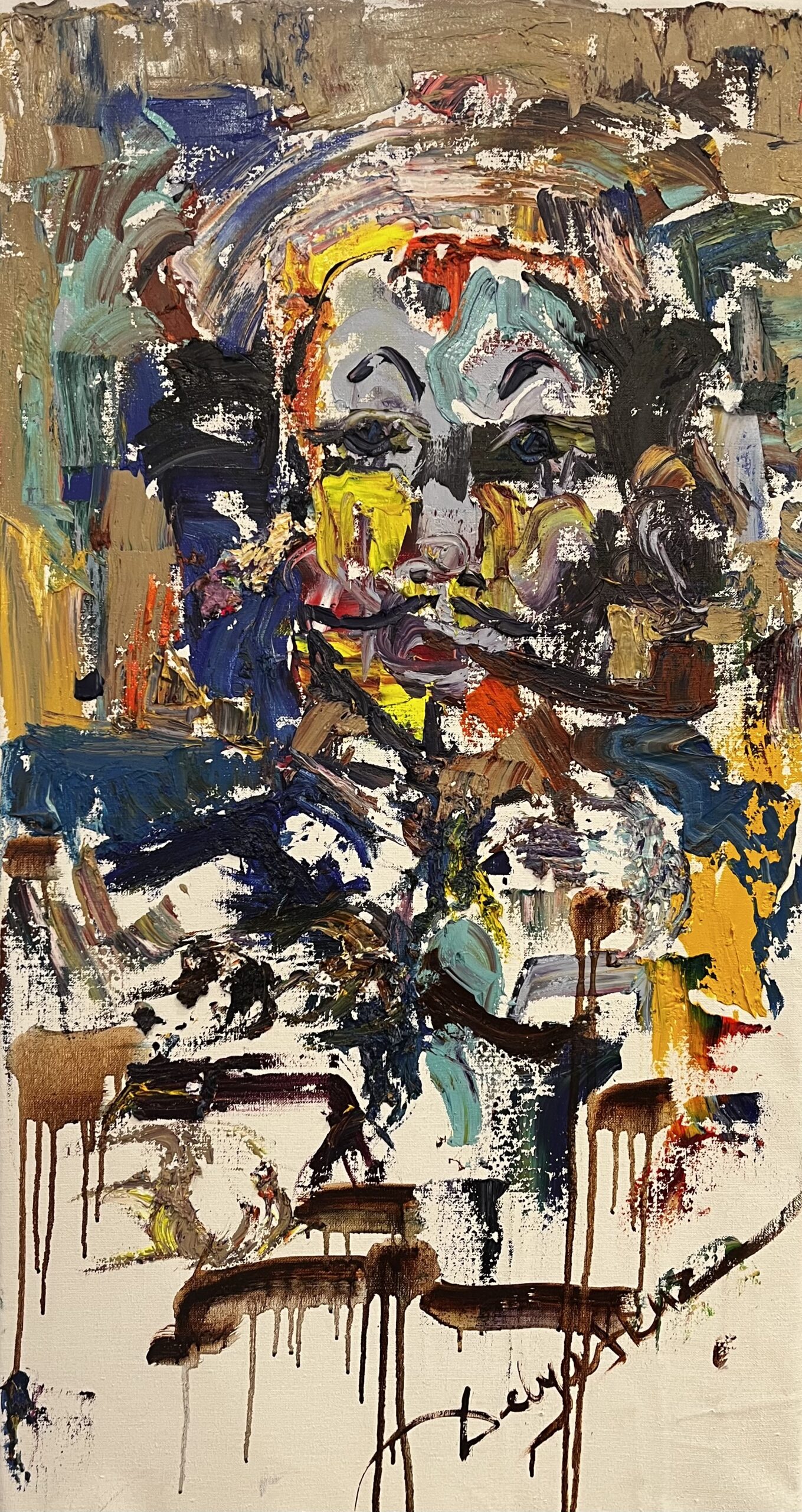 I intentionally left the lower part of the painting unfinished, with drips of paint as a symbol of emotional release — the impossibility of keeping everything inside.