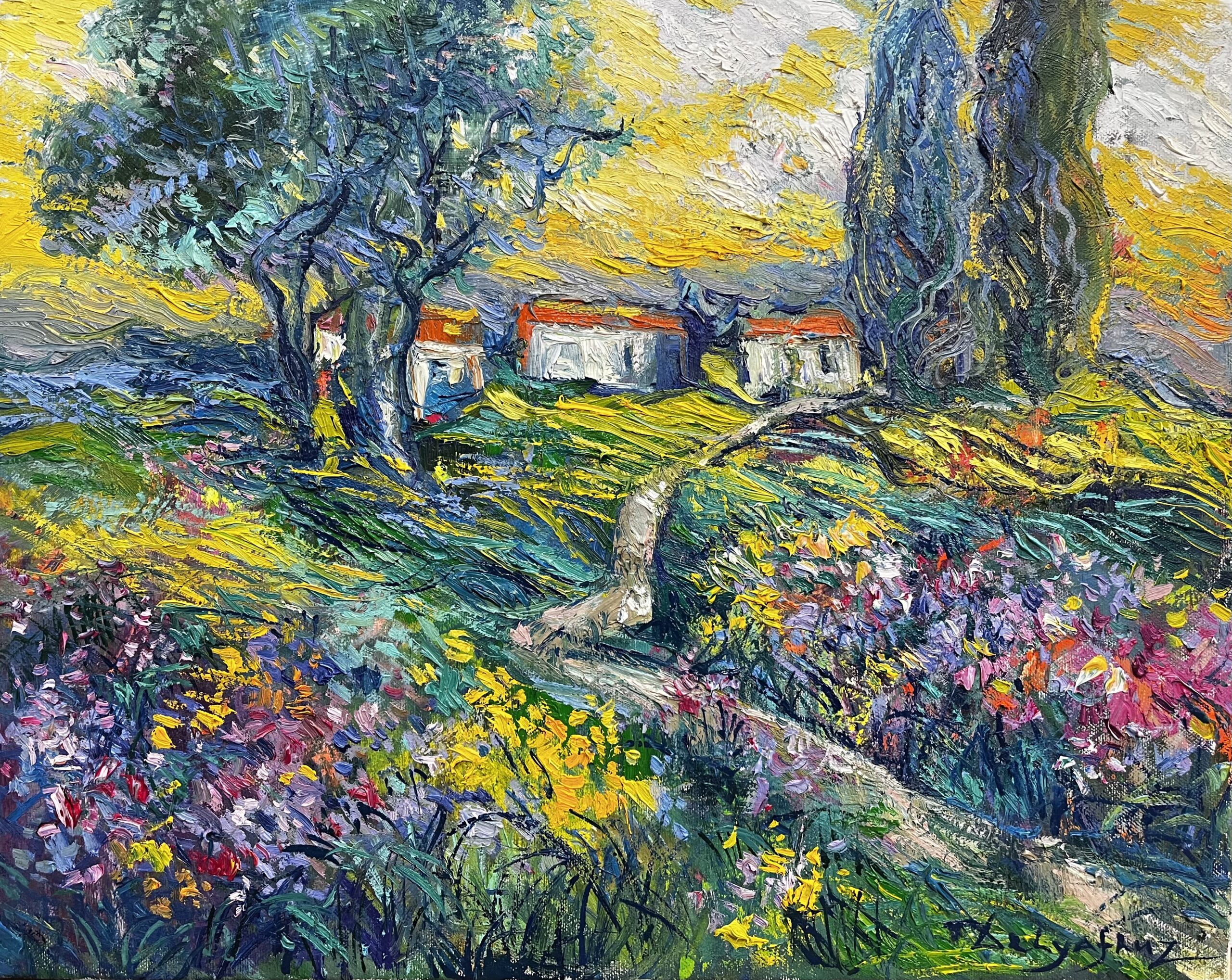 A refined landscape of quiet houses and graceful trees, bathed in a sense of timeless elegance. The composition evokes a retreat from the noise of everyday life — a place where stillness, balance, and understated beauty create a feeling of true serenity.